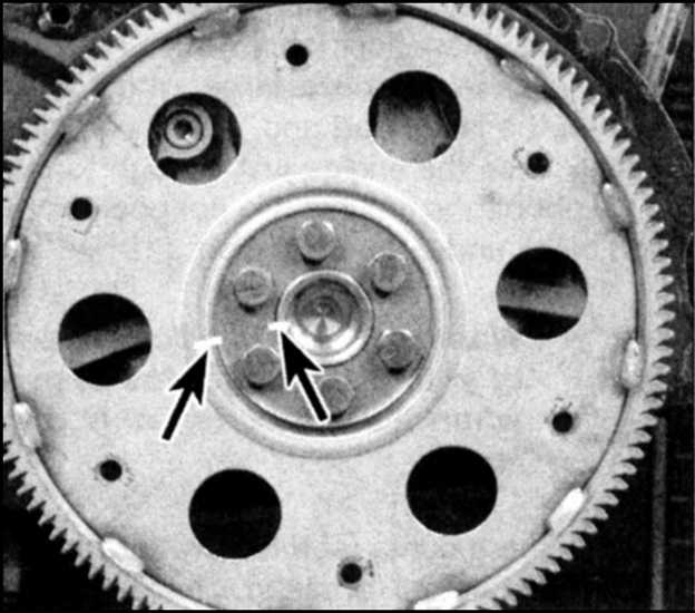 метки (указаны стрелками) взаимной ориентации маховика и коленвала,