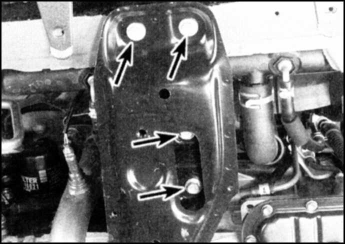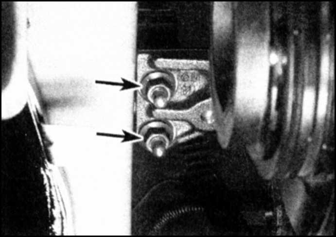 работая снизу, две гайки (фото слева) и один болт (отворачивается