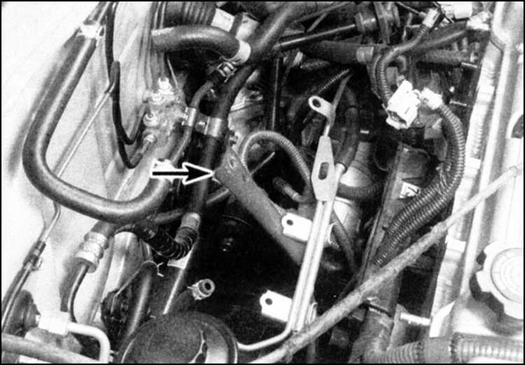 крепления жгута проводки (правая стрелка) от трубы охлаждающей жидкости
