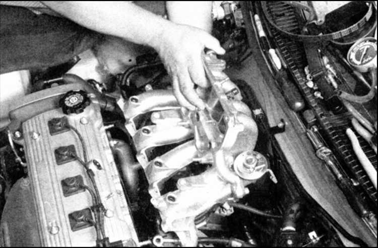 гайки и болты и снимите всасывающий коллектор с автомобиля. |